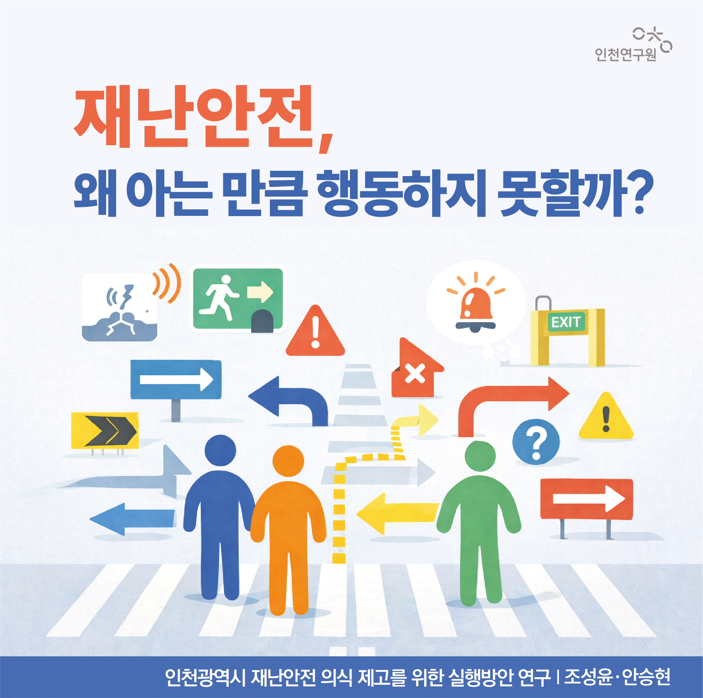 인천시, 인식-실천 간극 해소를 통한정책 신뢰 기반의 재난안전 실천력 제고 필요 복합위험 시대, 시민의 행동 변화를 끌어내는신뢰 중심의 인천형 재난안전 실행 전략 구축 필요재난의 복합화와 일상화가 심화하는 상황에서 관 주도의 일방향적 대응 체계를 넘어 시민참여 기반의 능동적 재난관리 체계로의 전환이 요구되고 있다. 그러나 실증 분석 결과, 인천시민의 재난안전 의식은 비교적 양호한 수준임에도 불구하고 실제 대비 행동으로 이어지지 못하는 ‘인식-실천의 비동기화’ 현상이 뚜렷하게 확인되었다.본 연구는 이러한 간극을 해소할 핵심 요인으로 ‘정책 신뢰’에 주목하였다. 시민이 행정을 신뢰하고 정책을 일상에서 체감할 수 있을 때 비로소 실천으로 이어질 수 있다는 문제의식 아래, 체험 중심 학습, 정책 과정의 투명성 강화, 구조적 지원 확대, 권한 있는 시민참여를 중심으로 한 정책 대안을 제시하였다. 이를 통해 시민의 자발적 실천이 지속적으로 이어지는 안전도시 인천을 구현하는 것을 목표로 한다.의식과 실천의 관계 규명 및 지역별 유형화를 위한 다각적 분석 진행본 연구는 재난안전 의식이 시민 실천으로 전이되는 과정에서 작동하는 심리적·구조적 메커니즘을 규명하고자 하였다. 이를 위해 계획된 행동 이론, 절차적 정의 이론 등을 검토하여 정책 수용성 분석 틀을 설정하고, 「2024 인천시민 재난안전 의식조사」 자료를 활용해 의식, 정책 신뢰, 실천 간의 관계를 실증적으로 분석하였다.아울러 인천시 10개 군·구를 대상으로 정책 신뢰와 실천 수준을 교차 분석하여, 고신뢰·고실천형, 고신뢰·저실천형, 저신뢰·저실천형, 저신뢰·고실천형의 4개 유형으로 구분하고, 지역별 여건과 제약 요인을 반영한 정책적 시사점을 도출하였다.인식과 실천의 간극 해소를 위한 정책 신뢰 기반의 구조적 개선 필요연구 결과, 인천시민의 재난안전 실천을 제약하는 핵심 요인은 정보의 부족이 아니라 정책에 대한 신뢰 수준과 실천을 가능하게 하는 실행 여건의 제약에 있는 것으로 나타났다. 시민들은 재난 위험을 인식하고 있음에도 불구하고, 정책 집행 과정에 대한 신뢰가 충분하지 않거나 시간·비용·접근성 등의 부담으로 인해 실제 행동을 주저하는 경향을 보였다.특히 원도심 지역에서는 정책 피로감이, 도서 지역에서는 물리적 접근성 한계가 반복적으로 실천을 가로막는 요인으로 작용하고 있었다. 이에 따라 향후 정책은 ▲ 단순 홍보 중심에서 체험 중심 교육으로의 전환, ▲ 정책 집행 과정의 투명성 강화, ▲ 개인 책임에 의존하던 방식에서 공공 지원 시스템 중심의 접근으로의 전환을 중점 방향으로 설정할 필요가 있다.시민이 신뢰하고 참여하는 안전도시 구현을 위한 정책제언본 연구는 인천시 재난안전 정책의 실천력을 제고하기 위한 실행 중심의 정책 대안을 제시하였다. 주요 정책 대안은 ① 체험·교육 중심의 안전 정책 전환, ② 재난안전 행정의 투명성 강화, ③ 취약계층을 고려한 구조적 지원 인프라 확충, ④ 주민 주도 거버넌스 활성화, ⑤ 행정체제 개편에 대비한 안전 행정의 연속성 확보로 요약된다. 이러한 대안들은 시민의 안전 의식을 토대로 정책 신뢰를 강화하고, 이를 통해 인식과 실천이 선순환하는 구조를 형성함으로써 인천시 재난안전 정책의 실효성을 제고하고자 한다.아울러 이러한 정책 대안은 단계적 로드맵에 따라 추진될 필요가 있다. 단기적으로는 정책 과정 공개와 체험형 학습을 통해 신뢰 기반을 강화하고, 중기적으로는 지역 특성을 반영한 실천 지원 체계를 확충하며, 장기적으로는 시민참여가 제도화된 재난안전 거버넌스로 발전시켜야 한다. 특히 2026년 행정체제 개편을 앞둔 현시점에서 구역 재편 단계부터 유형별 맞춤 전략을 반영함으로써 재난안전 행정의 연속성과 정책 수용성을 함께 확보할 필요가 있다.